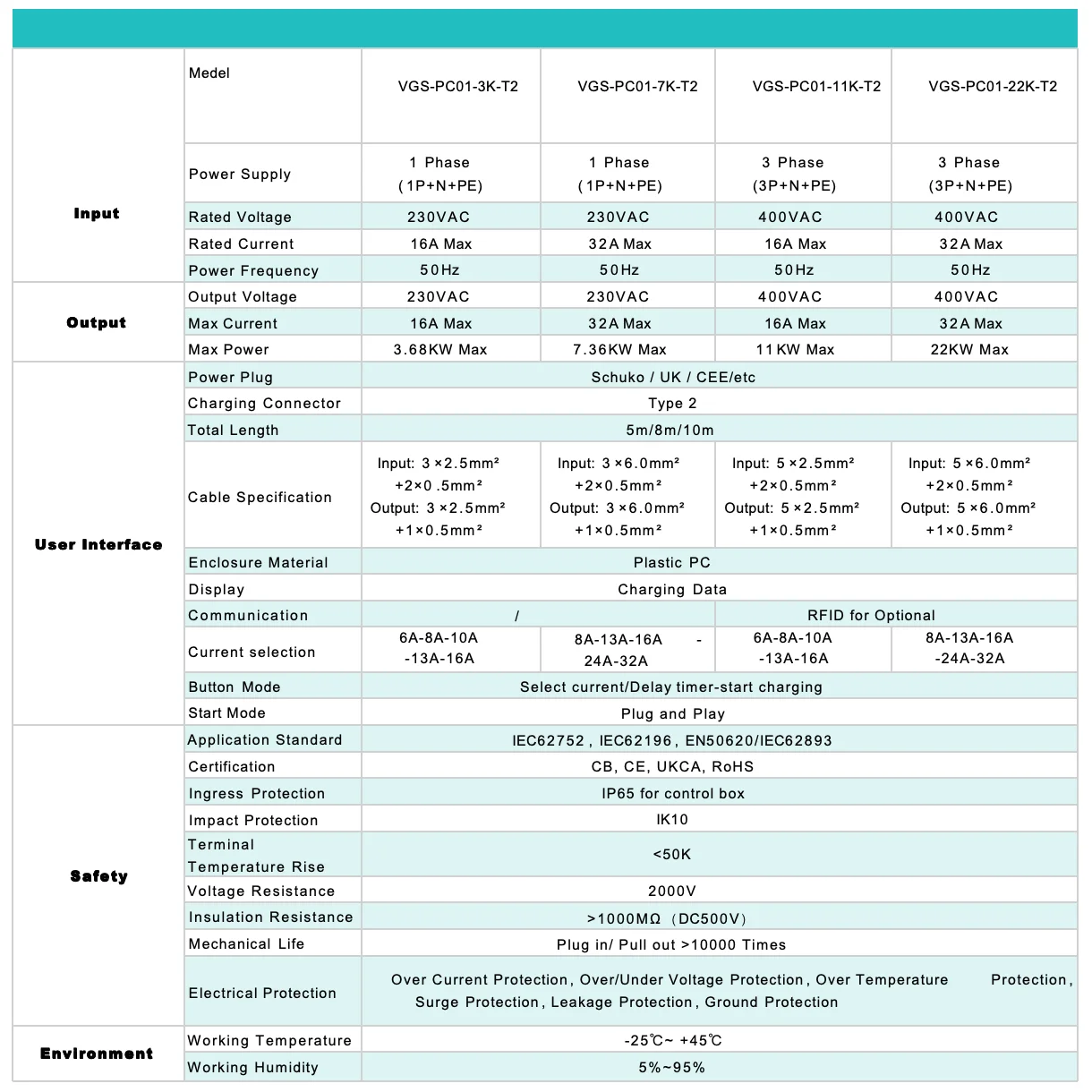 European Type 2 portable EV charger 22kw-11kW-7.4kW-3.7kW for Home